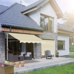Markizės audinys smėlio spalvos suteikia elegantišką ir neutralią išvaizdą, kuri lengvai dera prie įvairių fasadų ir lauko erdvių – nuo modernaus balkono iki klasikinės terasos.
